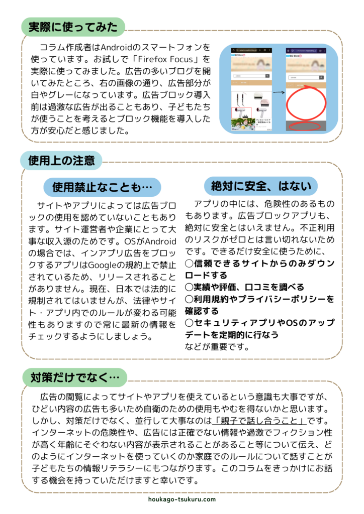 ホーム > 公表資料 > 専門職コラム > 広告ブロックについて 広告ブロックについて 2026年1月6日 シェア ツイート シェア はてブ シェア ツクルグループ専門職チームから月1回コラムをお届けしています。 第18回は保育士より「広告ブロック」についてです。 どうぞご覧ください。