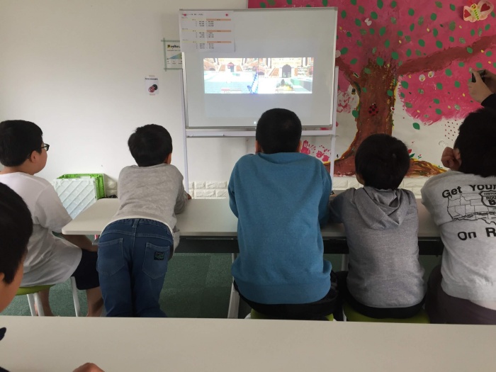 1対1で友だちが戦っている間、他の子ども達は別室にてプロジェクターを使い観戦できるようにしました(‘ω’)