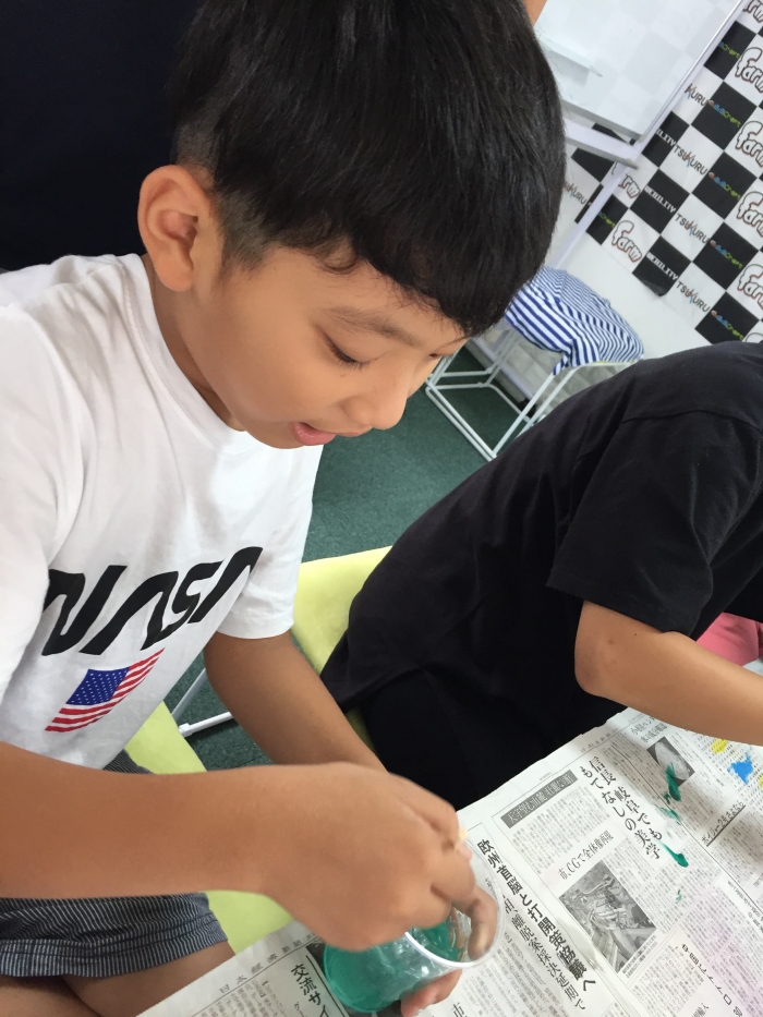 薬品を使うということで、事前に子供達にはしっかりと注意事項を伝えてから始めています。みんな真剣な表情で静かに聞いてくれていました。