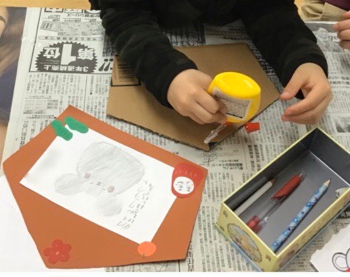 「獅子舞にかまれたらいいことあるねんなぁ」「獅子舞じゃなくてもアレンジしてもいい?」などと賑やかにお話をしながらみんなで製作♪