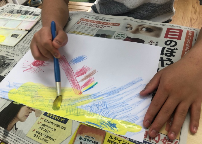 にじみ絵の作品が完成すると、はじき絵の制作に挑戦✏️