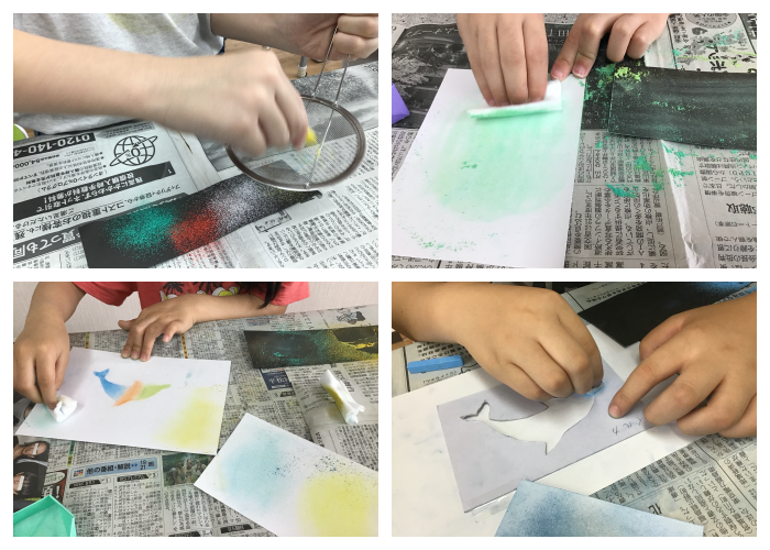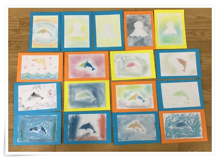 イルカの型紙を使用し、コットンにて色を伸ばしていきました*