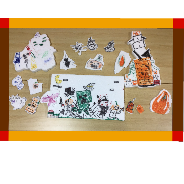 その他にも発泡スチロールにハロウィンの絵を描いてみました⭐️