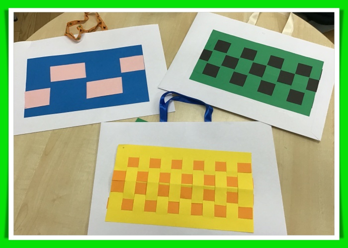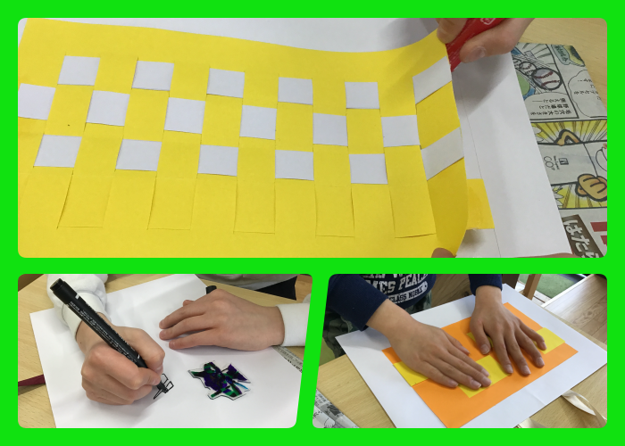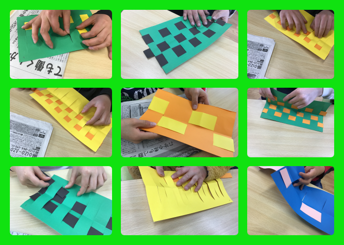 格子あみ紙バッグでは、簡単から難しいまでの難易度別になっており、作成したい形を考えて子ども達に選んでもらいました( ´ ▽ ` )