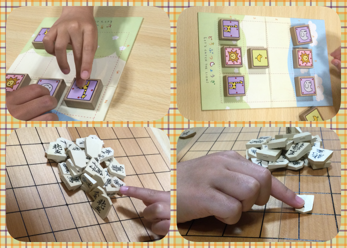 少人数での取り組みでは「どうぶつ将棋」や、将棋盤での山崩しなどを行いました。