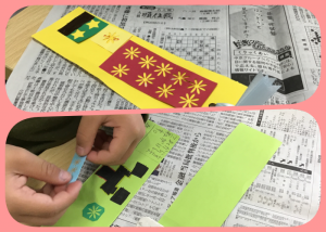 「どんな感じにしようかな?」「キラキラの折り紙を沢山貼ろう!」と作りたいデザインを考えながら楽しく取り組んでいました。