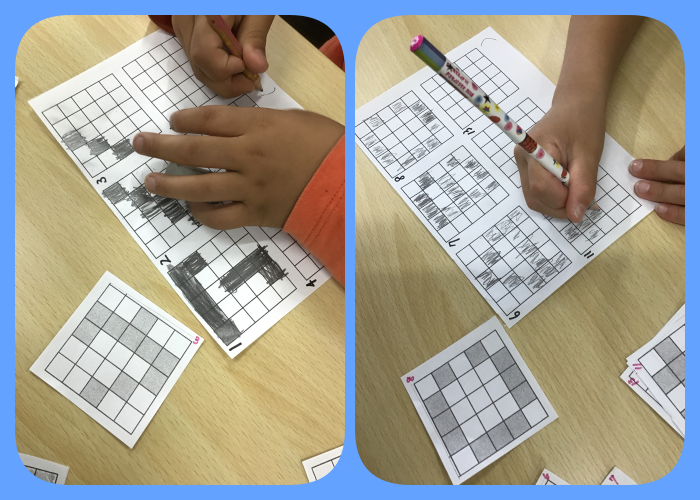 体でプログラミングの”ドットでデザイン”では基盤のマス目を見本を見ながら同じ様にぬります✏️