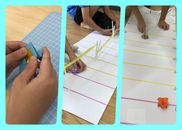 少しの折り目の違いで上手く飛んだり飛ばなかったりするため、こまめに微調整する等苦戦しながらも遠くに飛ばす事や高跳びのように高く飛ばす事が出来ていました(^ ^)