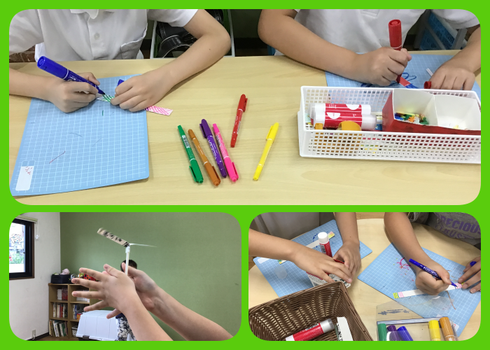 その後はグループでレーシングカーに装飾をして、それぞれの好みのレーシングカーを作りました。前に長く装飾するグループや背を高くするグループ等グループによって様々なレーシングカーが出来上がりました。