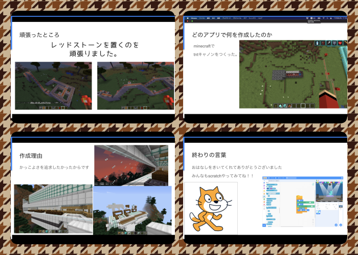 マインクラフト、scratch、動画編集など、いろいろな取り組みの紹介があり、当日は聞く方もとても楽しむことができましたね🍀