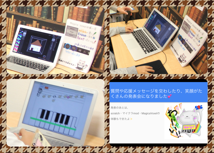 発表会のあとは、スタッフが紹介したマインクラフトのミニチュアMODや、3Dモデルを作成できるマジカボクセル、scratchで音楽づくりなど、いろいろな体験をしました♪