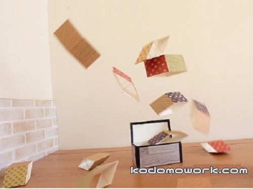 工作では牛乳パックのびっくり箱を作りました。蓋を開けると、中から勢いよくパックが飛び出す仕掛けになっています。