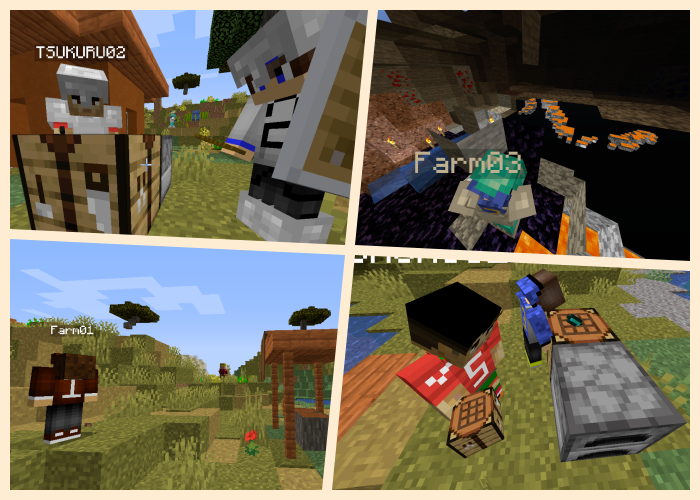 「エンダードラゴン討伐!」「街を造る!」「秘密基地建築!」それぞれの目標に向かって力を合わせて助け合っています。