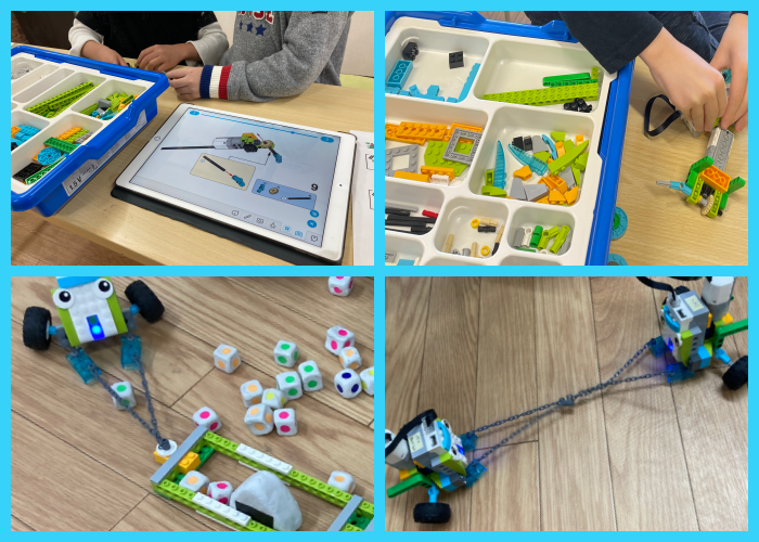 お友だちと一緒に「重り」や「タイヤ」を変更して「まだ引っ張れるよ!」と声を掛け合い実験を楽しんでいました。ロボット同士で引く力を競っているチームも😀
