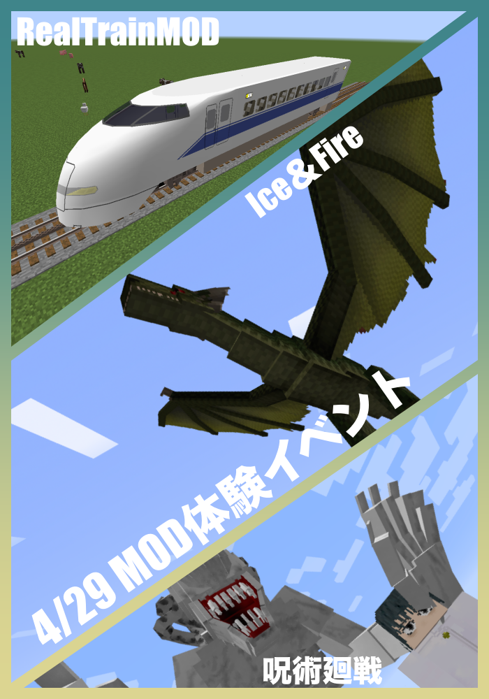 子どもたちに人気の鬼滅の刃や呪術廻戦の敵やキャラクターが登場するものや、大きな竜が登場するファンタジー感満載なもの、はたまた新幹線が登場する現代的なものと様々なMODを用意しました。