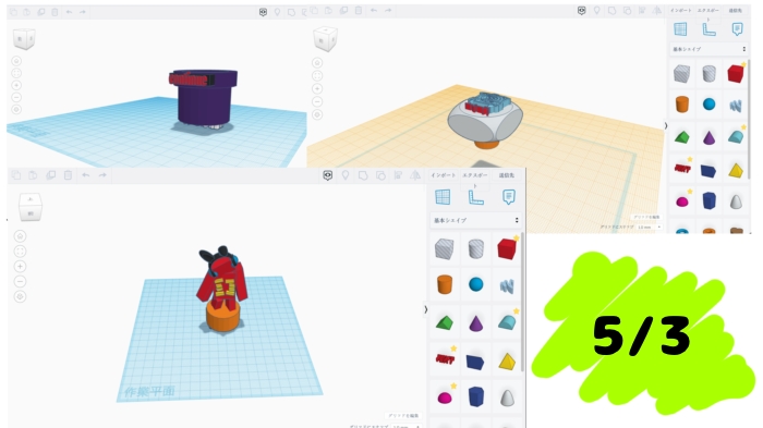 5/3は[ThinkerCAD]という3Dデザインソフトを使って、3Dデザインを行いました。