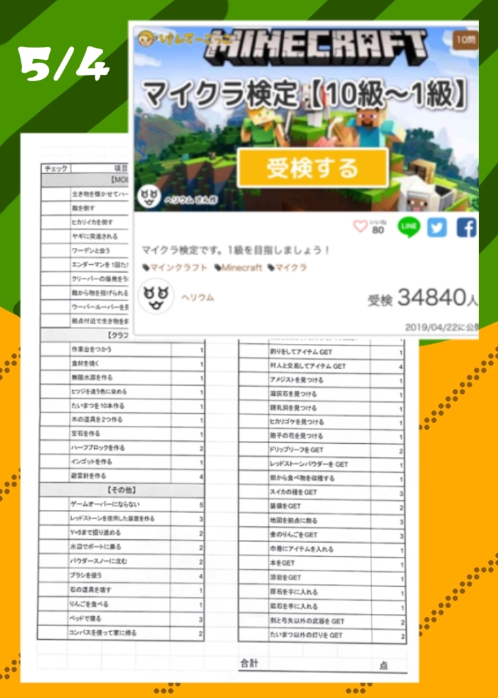 5/4はマインクラフト個人戦!ミッションをクリアしてポイントを集めます!