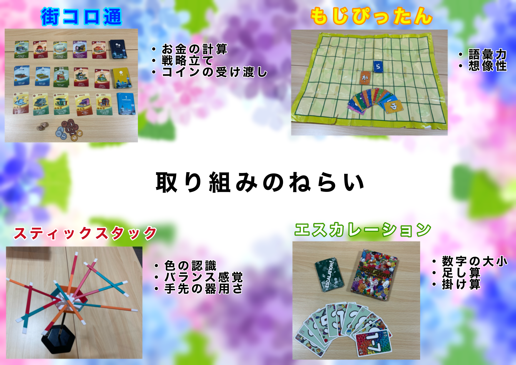 6月のSST(ソーシャルスキルトレーニング)では、街コロ通やもじぴったん、スティックスタック、エスカレーションなど様々な活動にとりくみました✨