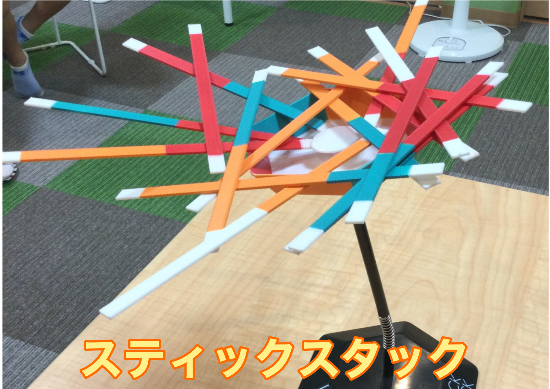 タワーの上に倒さないようにスティックを積み上げていくドキドキ感を楽しみました。