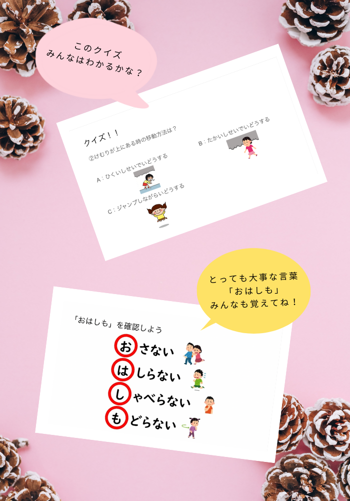 お家の人にもお伝えしてもらうための資料もお渡しさせていただいていますので、ぜひお家でもご確認ください。
