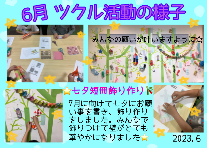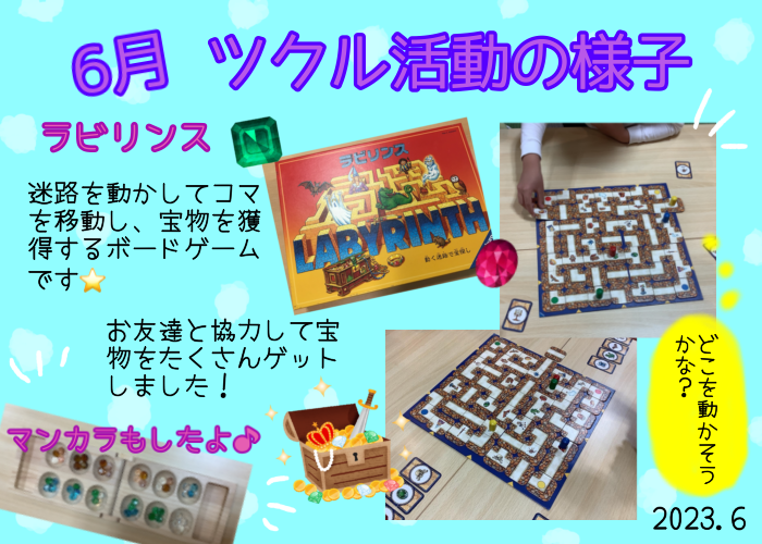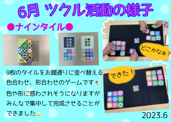 6月のツクル活動は、キーボード配置クイズ、ラビリンス、マンカラ、ナインタイル、ワニに乗る、七夕短冊・飾り作りなどに取り組みました⭐️