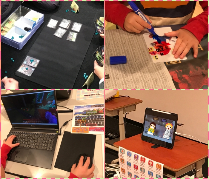 フェスタでは異年齢の子ども達がどうしたら楽しめるのかスタッフ一同考え、今回はマイクラコーナー、プラパンコーナー、ボードゲームコーナー、からだあそびコーナーの4つを用意しました!