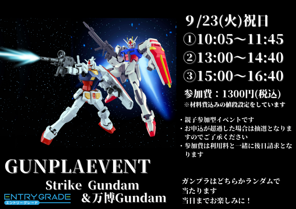 9月23日(火・祝)にガンプラ制作イベントを開催します。昨年ご好評いただいた企画を、今年も実施します。皆さまのご参加をお待ちしています。