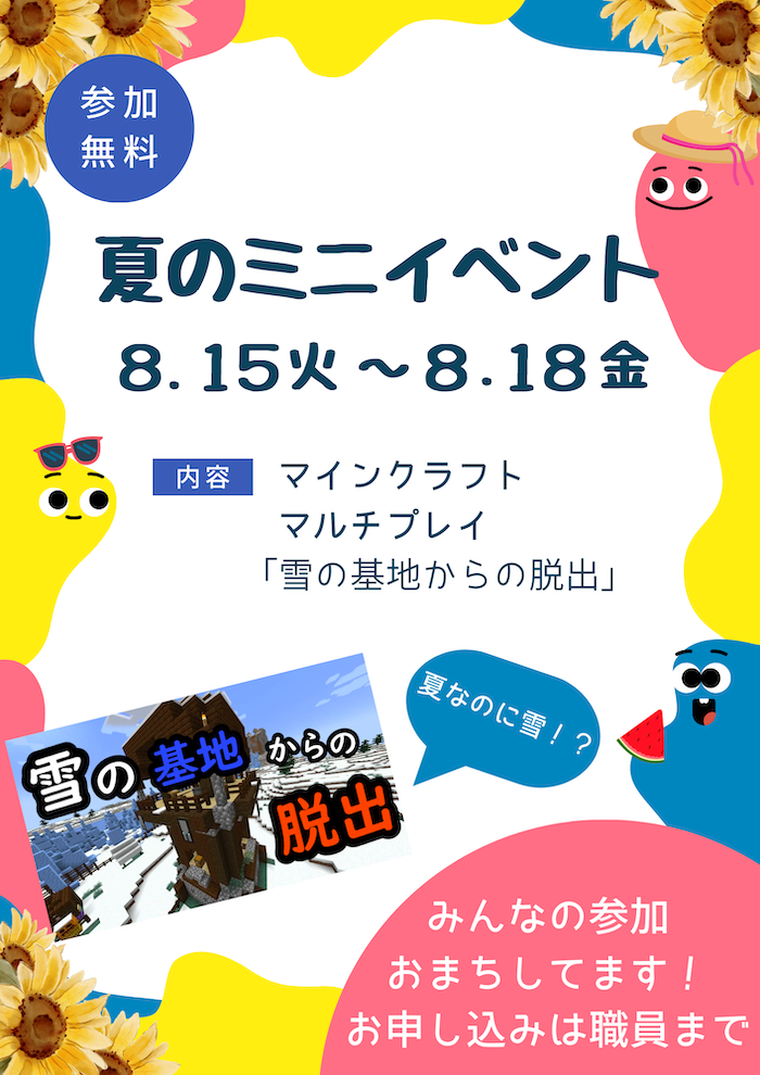 8/15(火)~18(金)にはミニイベントを開催します。