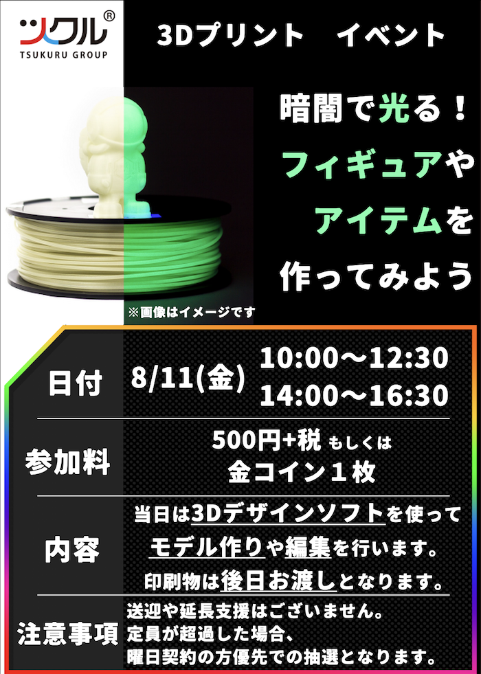 8/11(金)には、3Dプリントのイベントを開催します。