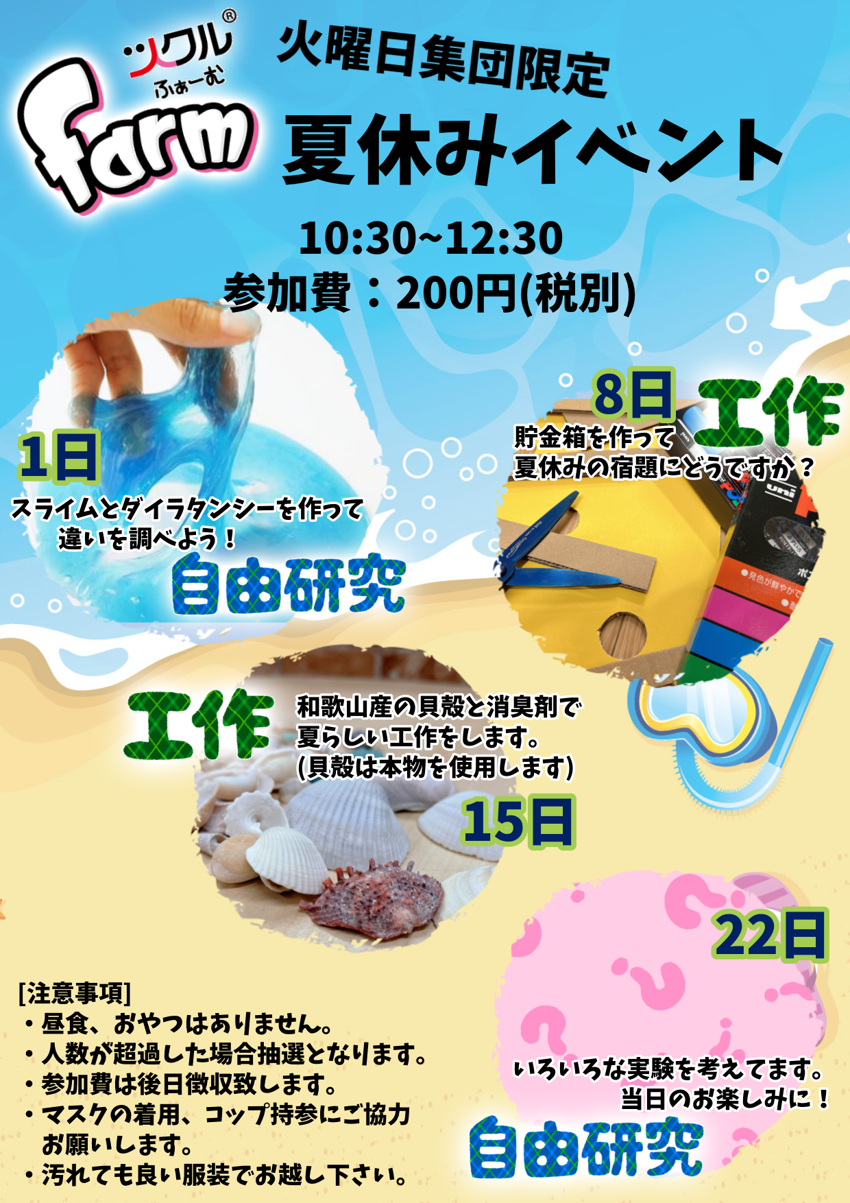 もうすぐ夏休みですね! 夏休みのfarmはイベントが盛りだくさんです!!