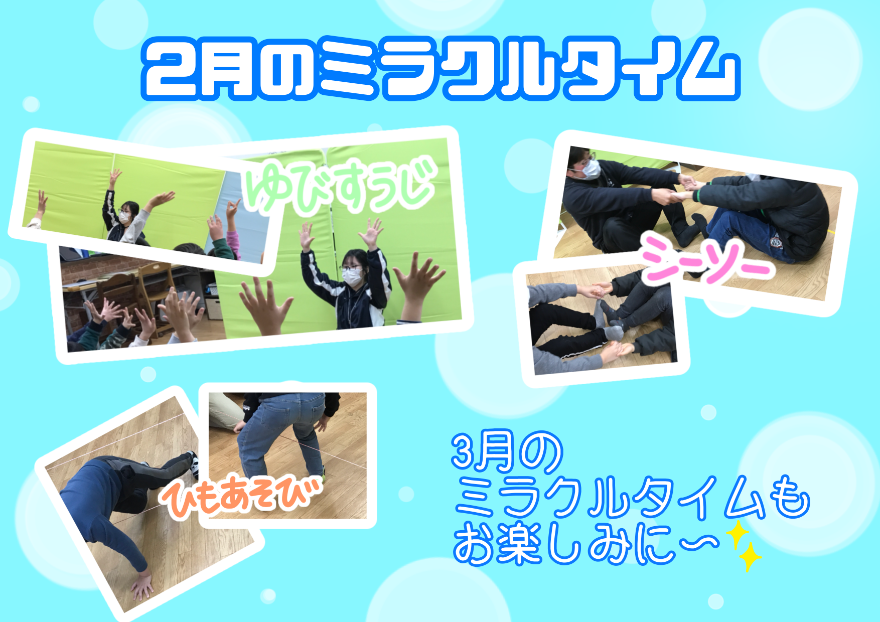 ミラクルタイムでは短時間で身体を動かす楽しい取り組みを行いました♬
