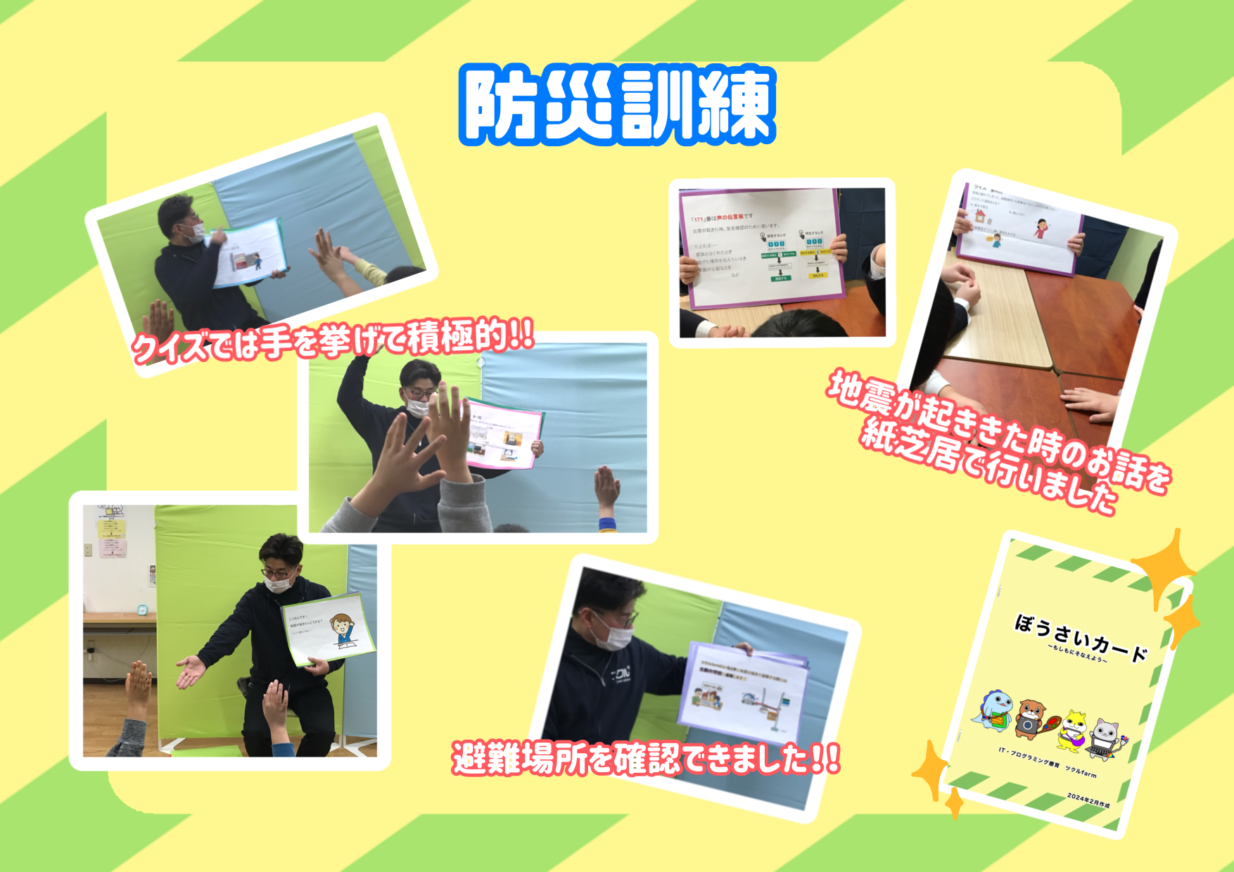 地震が起きた時はどうするのかをみんなで考え、理解を深めました。