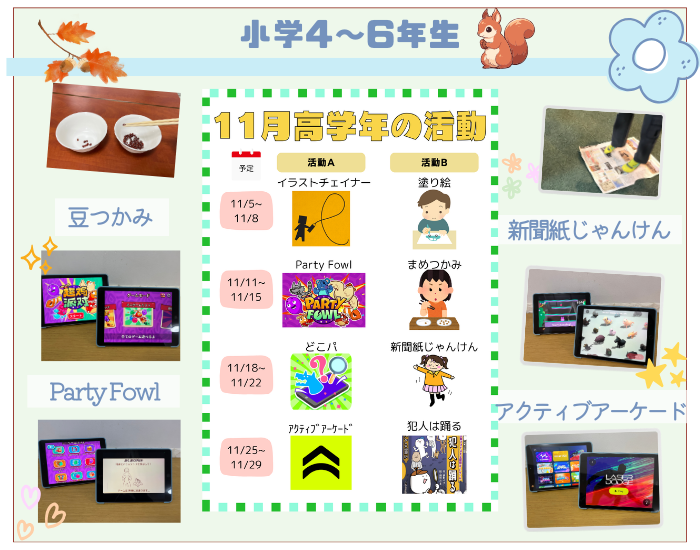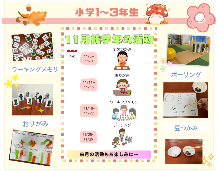 11月に取り組んだ低学年と高学年の活動の紹介です(๑>◡<๑)