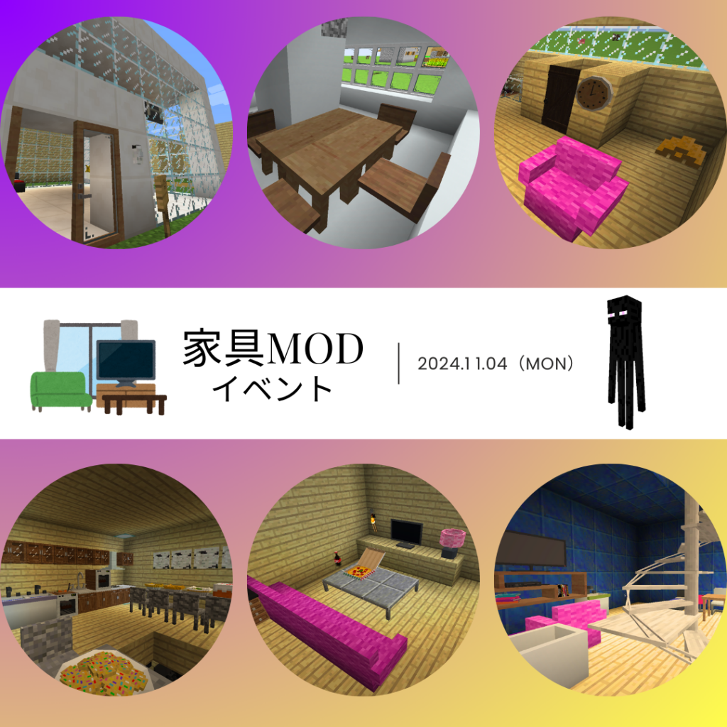 事前に用意されている家をもとに、思い思いに装飾しました☆家具MODならではのアイテムを使って作成しています!継続して建築しているお友達もいて、外から室内が見えたり、ピンクのソファーや螺旋階段を使用するなど、工夫してオリジナリティー溢れるお家が完成しました (*’▽’*)