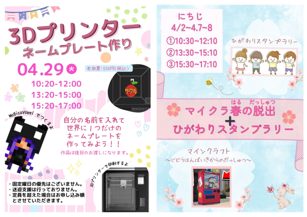 29日【3Dプリンターイベント(ネームプレート)】