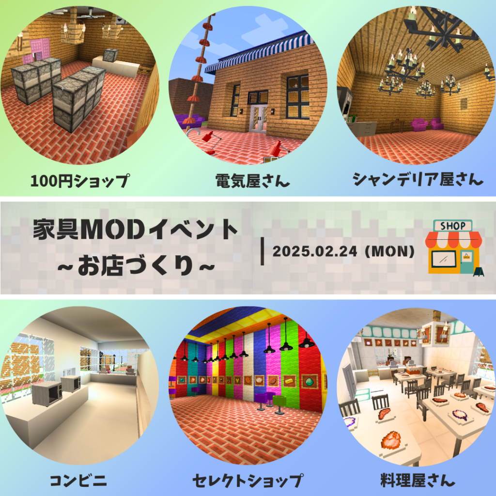 家具MODを使用してお店づくりを行いました!家具MODならではのアイテムを使って、作成しています!★外装にもこだわり、素敵なお店がたくさん完成しました (*’▽’*)