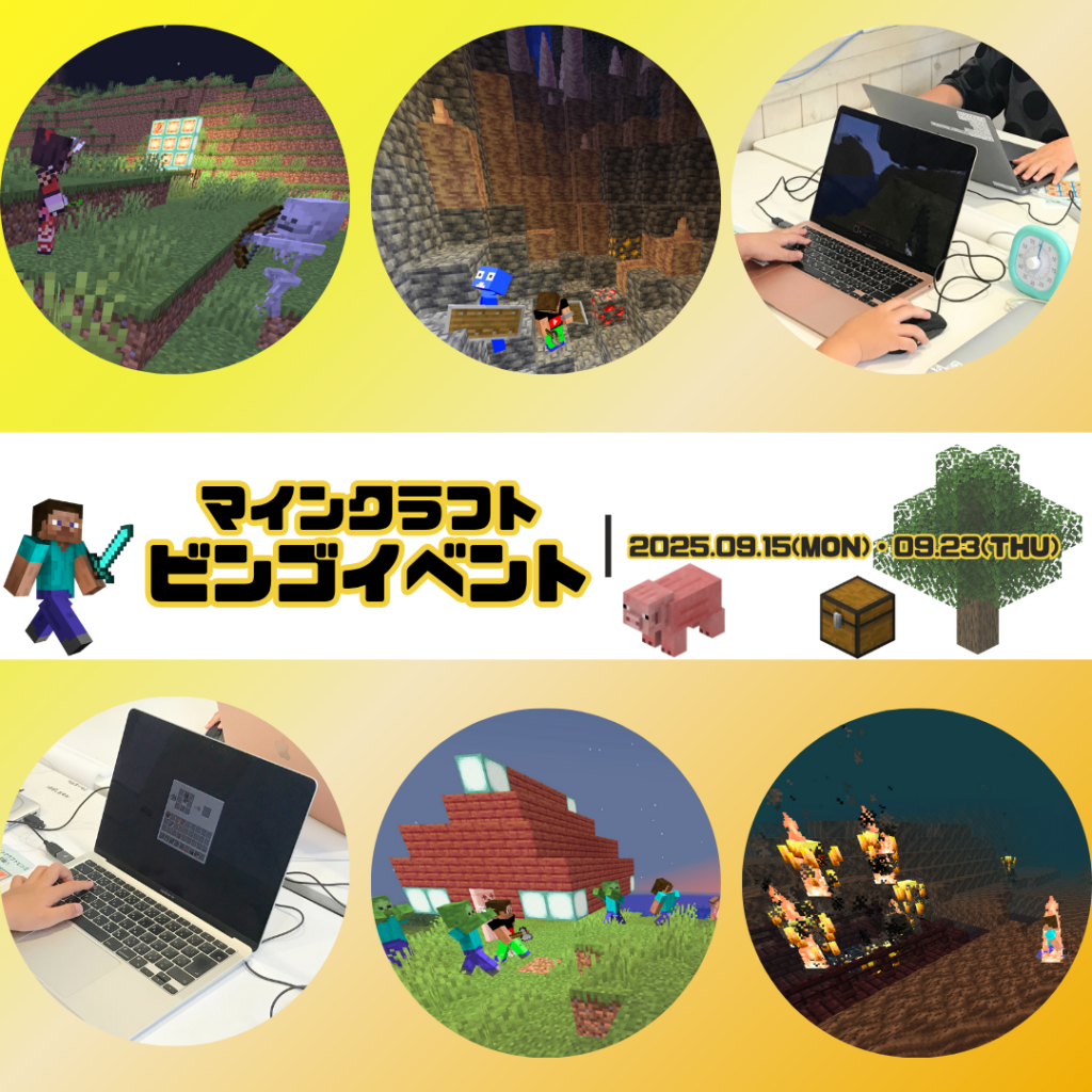 マインクラフトのサバイバルイベントを『初級・中級・上級』の難易度別で2日間に分けて行いました。お友達と協力して、お題のアイテムを集めたり、作ったりしながらビンゴを目指しました(*’▽’*)「楽しかった!」「ビンゴできた!」と楽しそうな感想や、「もう終わり?」と名残惜しんそうな感想が聞けて、支援員も嬉しかったです♪