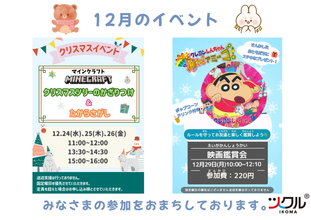 12月と1月のイベントのお知らせです。