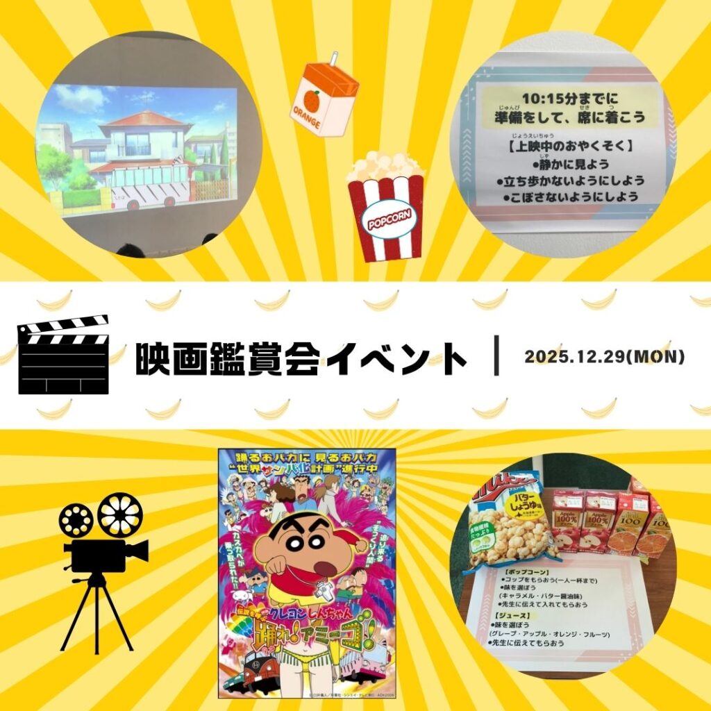 ポップコーンとジュースを食べながら「クレヨンしんちゃん踊れ!アミーゴ!」の映画鑑賞を行いました。ルールを守って、みんなで楽しく鑑賞しました(*’▽’*)