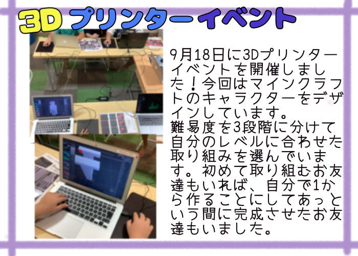 普段の療育で3Dプリンターの作品作りに取り組んでいるお友達もいます!
