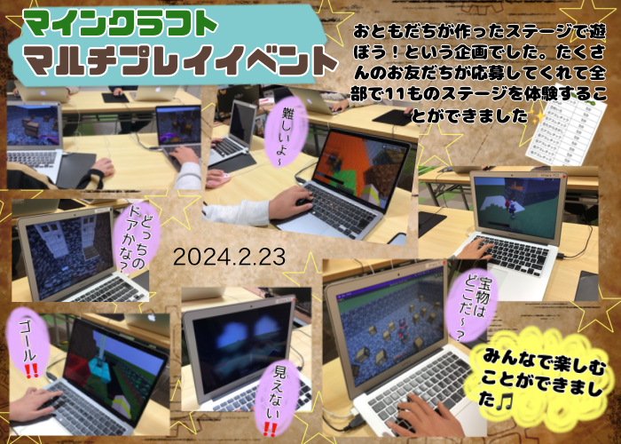 2月23日のイベントはマインクラフトのマルチプレイイベントで、お友だちが作ったステージで遊びました。