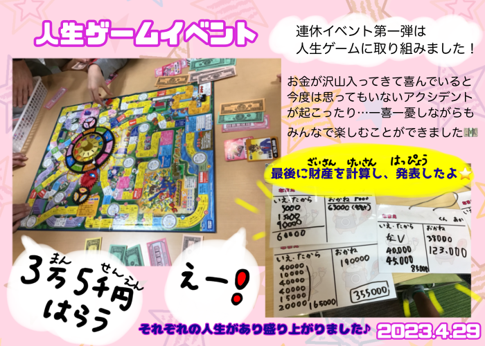 ⚫︎4月29日(祝)・・・人生ゲームイベント