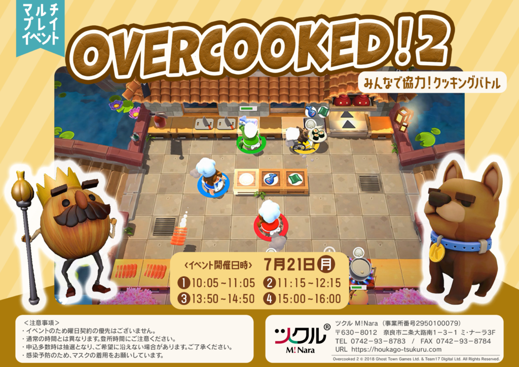 7月21日(月) は協力型クッキングゲーム 『OVERCOOKED! 2 〜みんなで協力!クッキングバトル〜』 を開催予定です。また月末には活動報告をさせていただきますのでお楽しみに!