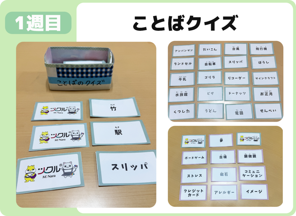 お題が書かれたカードの“ことば”を口にせず、ヒントだけで伝えるクイズに挑戦。出題者は語彙をひねり出し、回答者は連想力をフル回転させながら、お互いに「伝える・汲み取る」力を楽しく伸ばしました。