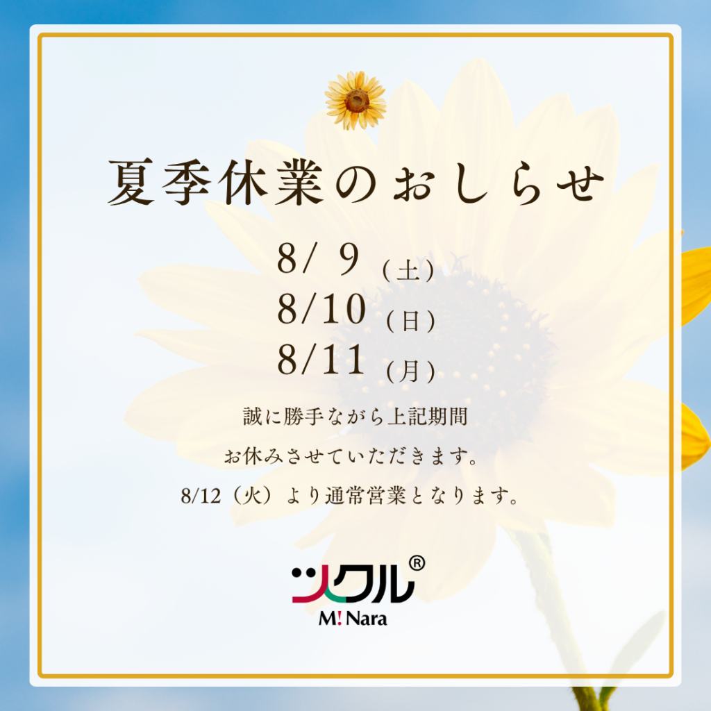 - 休業期間:2025年8月9日(土)〜8月11日(月) -