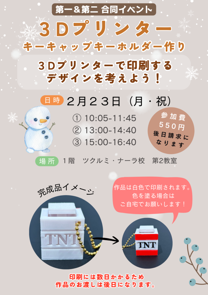 2月23日(月・祝日)に3Dプリンターイベントを開催します!
