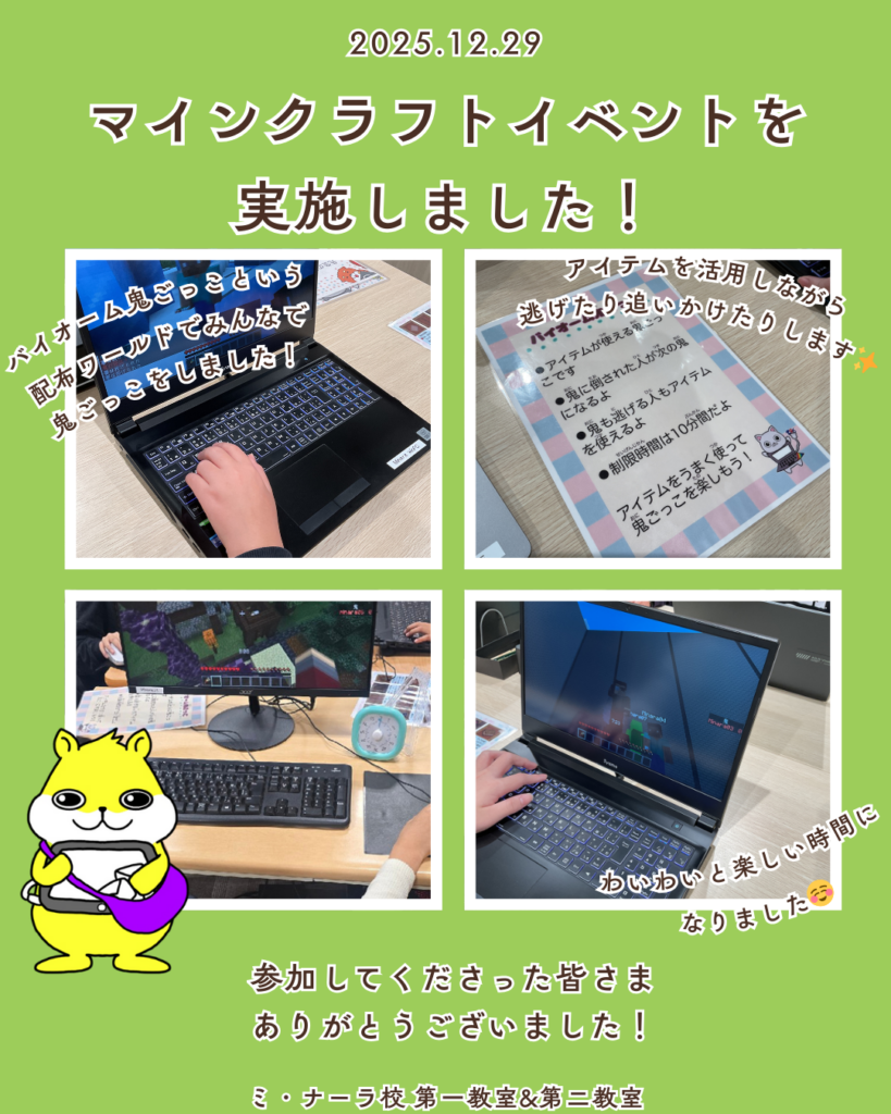 12月29日にマインクラフトイベントを開催しました!