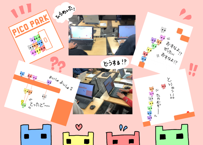 2月には、2つのイベントを実施しました。2月の11日には、協力必須のマルチプレイゲーム「Piko park」に取り組んでいます。可愛らしいキャラクターを操作してゴールを目指すのですが、実はなかなかの難易度……。