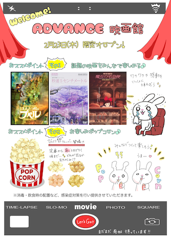 23日には、ADVANCE映画館が開館!