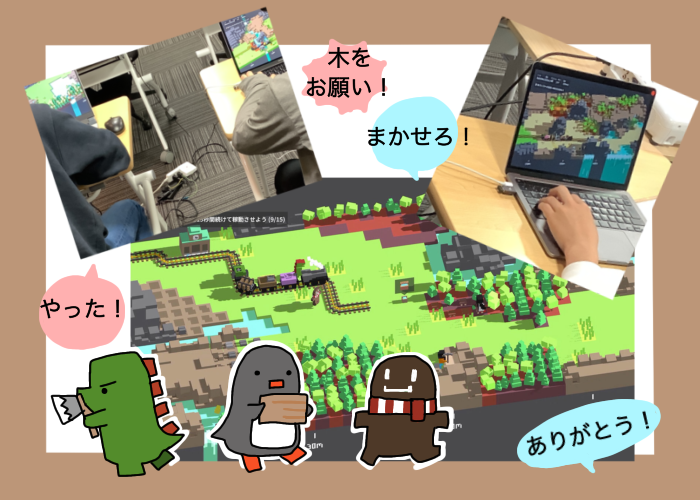 後半にはUnrailed!のイベントを行いました。役割分担がとても重要なこのゲーム、皆さんからは自然に「これ、お願い!」「こっちやるわ!」「あ、助かった。ありがとう!」と、たくさんの目標に向かって心を合わせて協力する姿がありました。